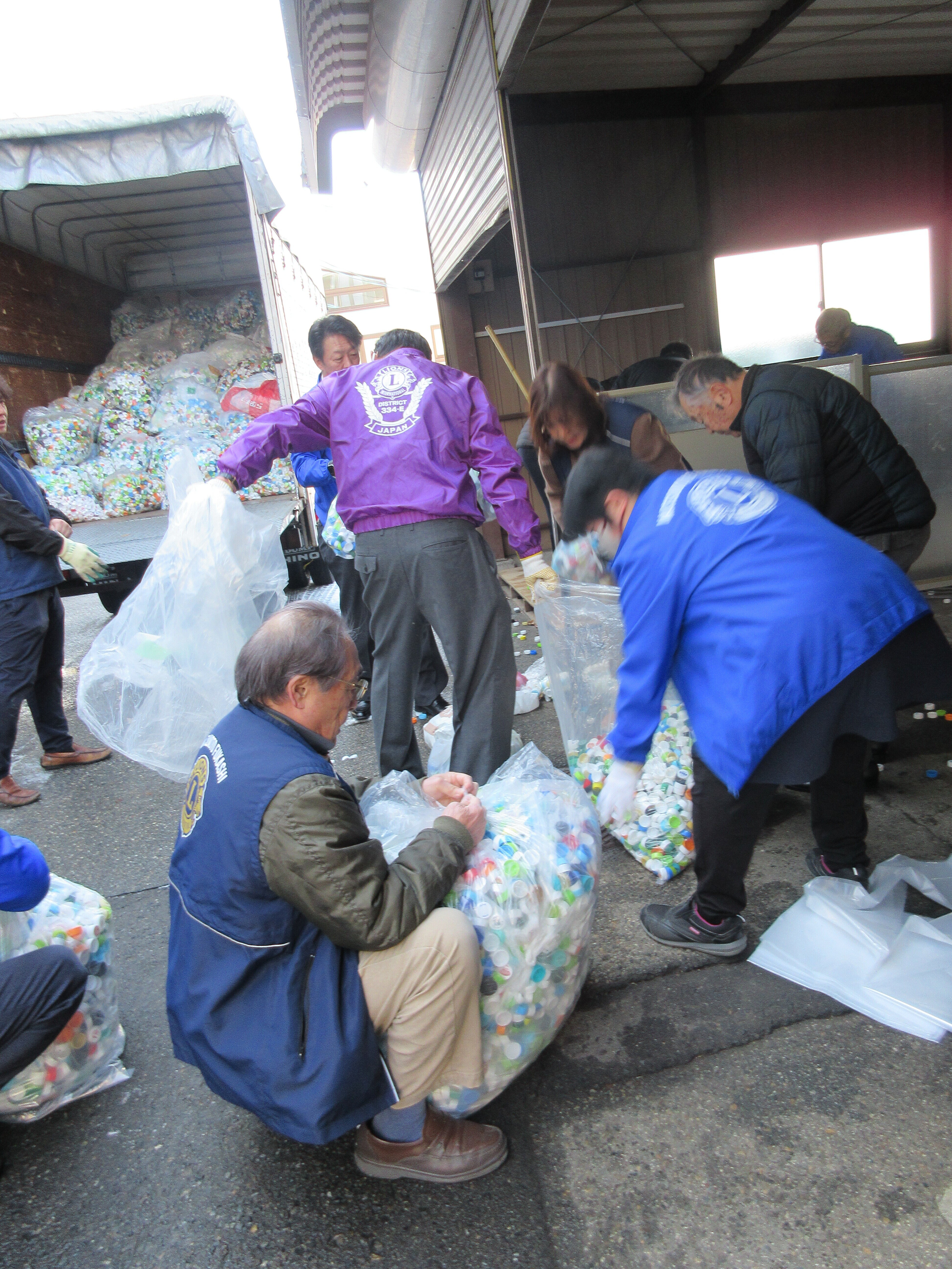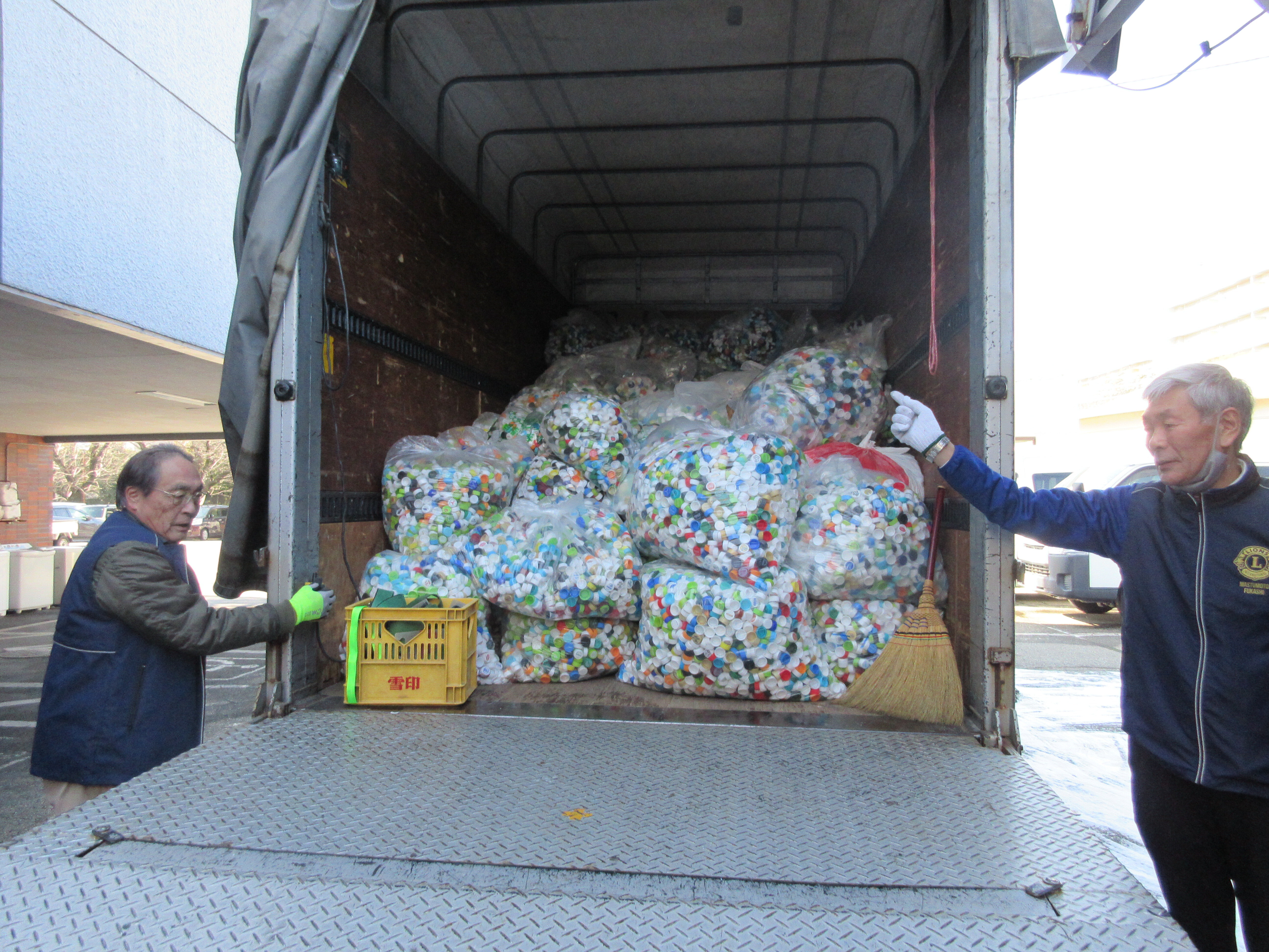 「エコキャップ運動」では、学校や企業、住民の皆さまから、たくさんのエコキャップが集められています。2月12日、松本深志ライオンズクラブの皆さまにご協力いただき、社協に集められたエコキャップをリサイクル業者へ搬出しました。今回搬出したキャップは総重量1540kg、キャップ数約77万個で、ポリオ(小児麻痺)ワクチン約770人分に相当します。ゴミになってしまうペットボトルのキャップを集めることで世界の子どもたちにワクチンを届けることができます。今後も「エコキャップ運動」にご協力をお願いいたします。