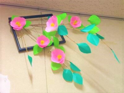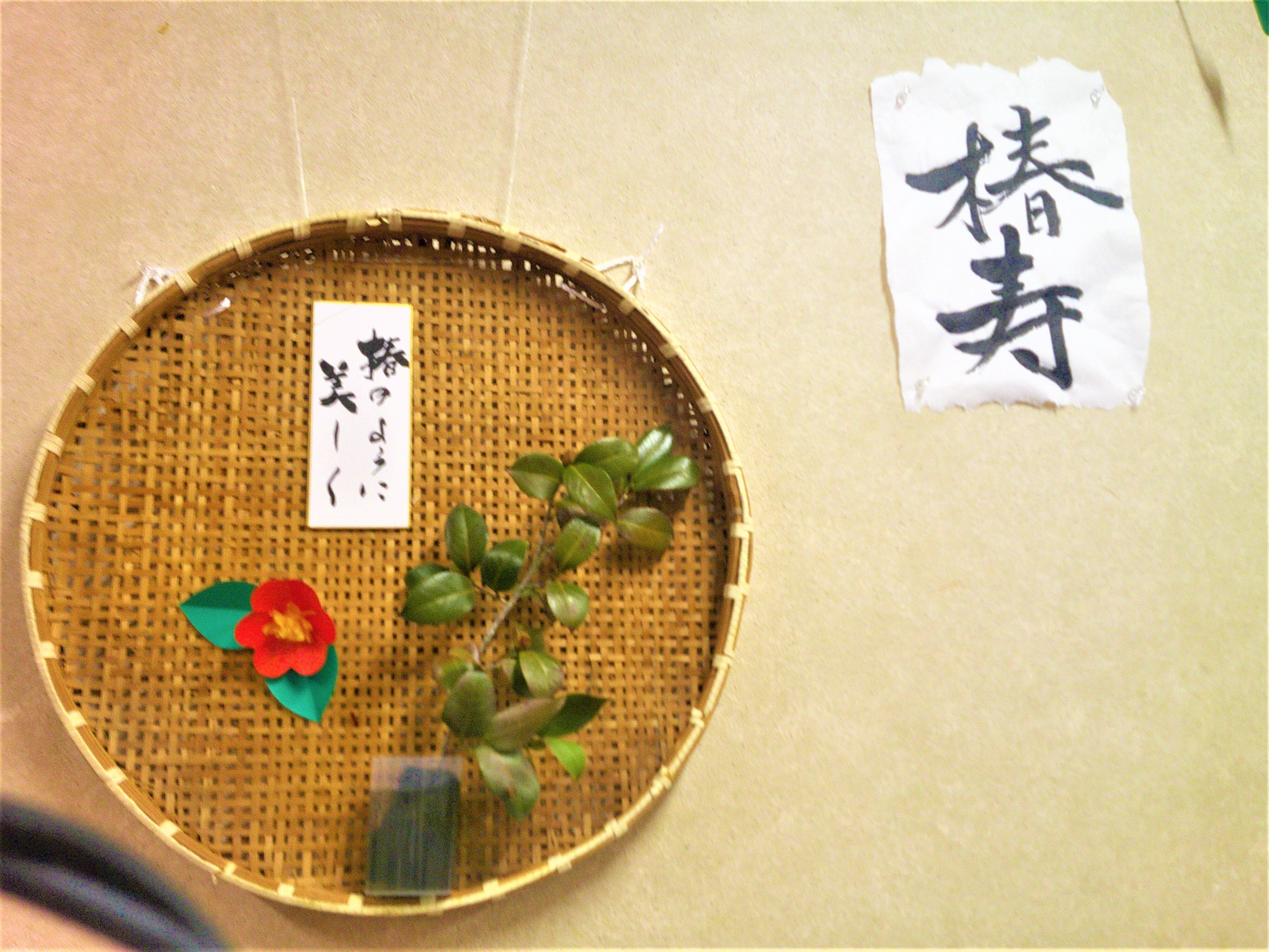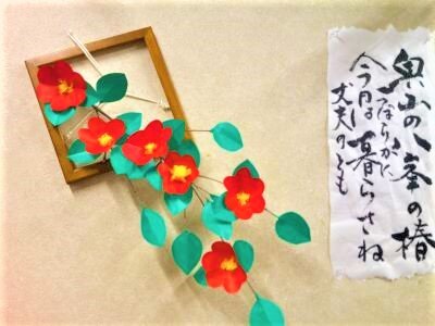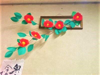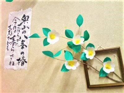本物の枝に咲かせた椿の花は利用者様のも好評で、