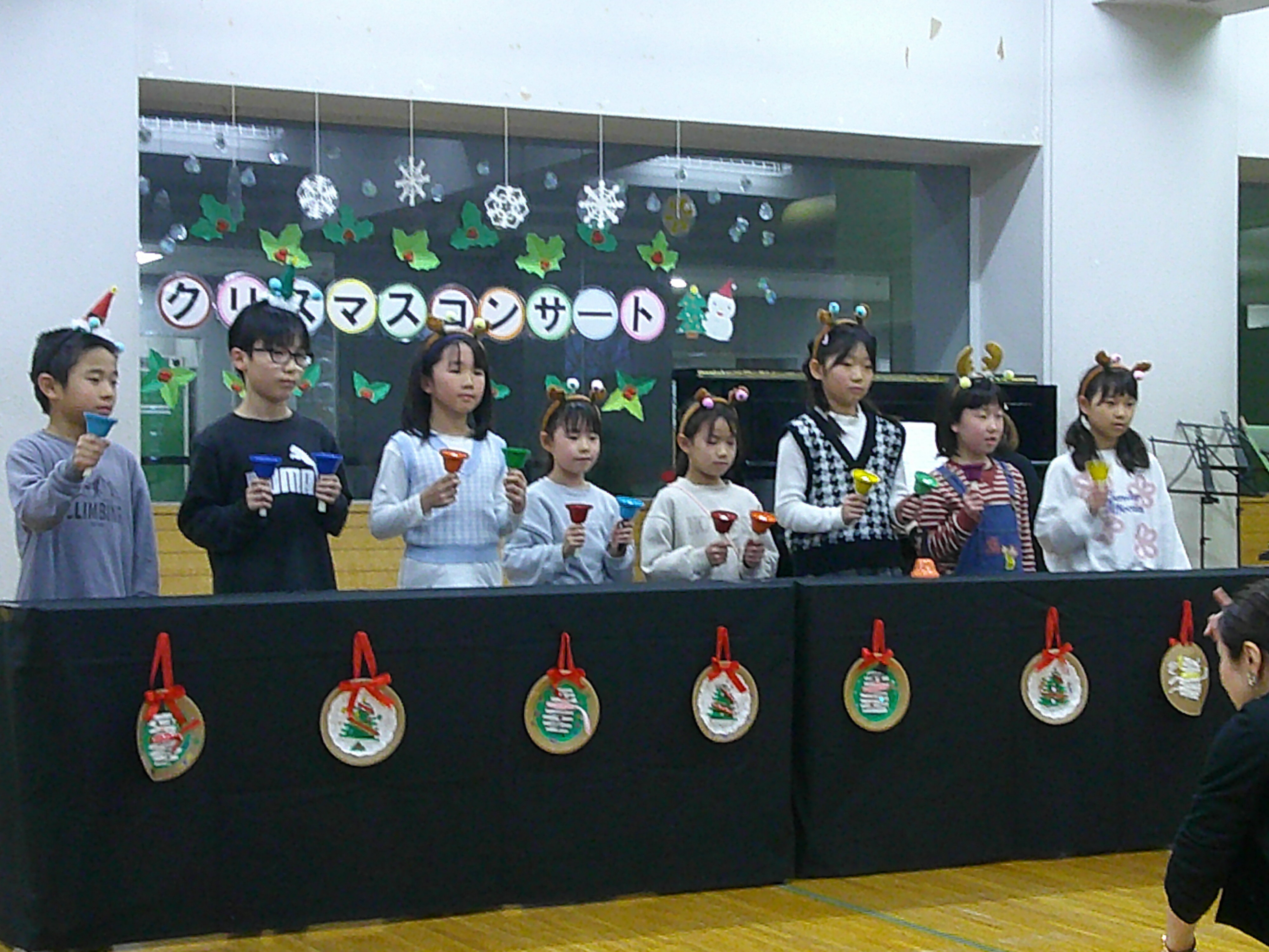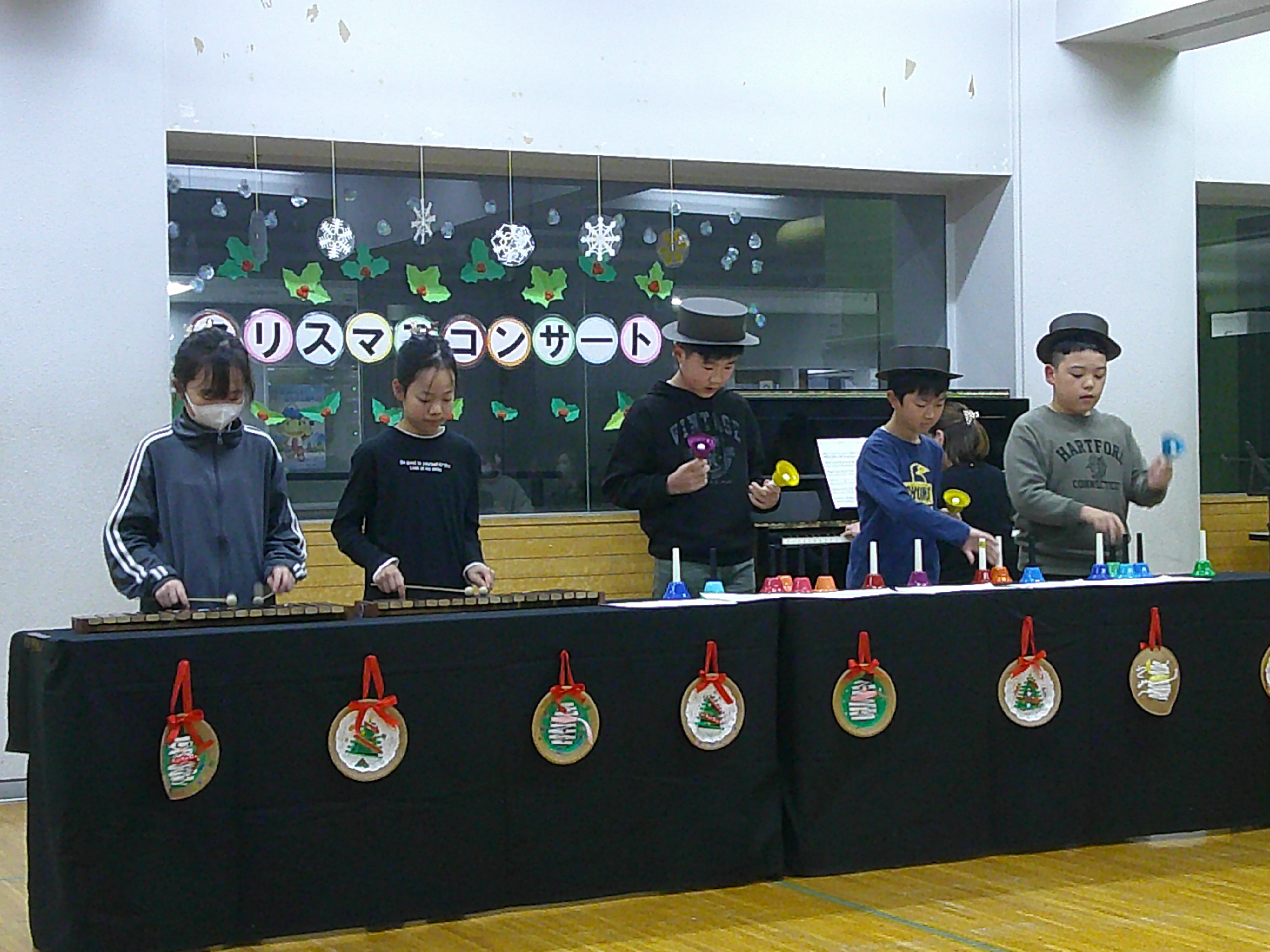 声楽、ハンドベルや木琴、ピアノ連弾を学年ごとやソロで披露し、最後は全員で二部合唱「ふるさと」で締めくくりました。