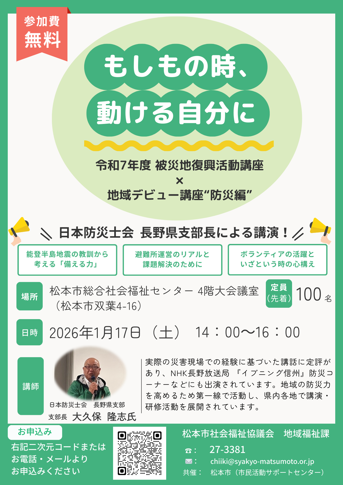 令和7年度松本市被災地復興活動講座を開催します!